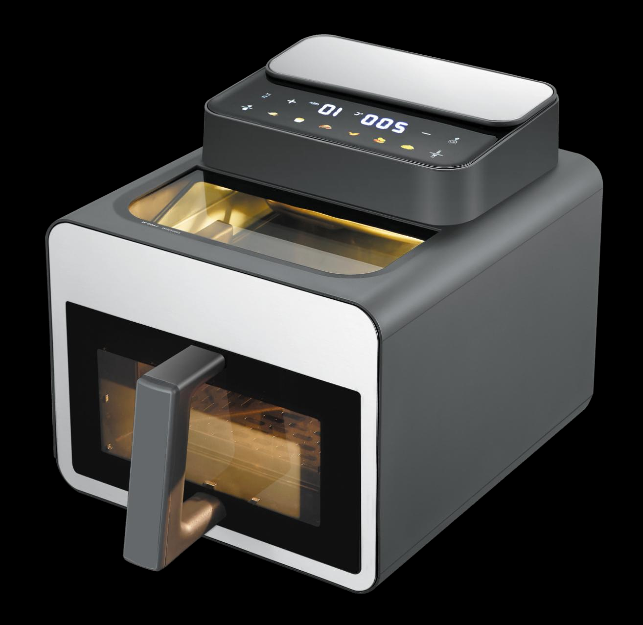 Контролируйте процесс через прозрачное окно, не открывая крышку и не выпуская горячий воздух. При кратковременном отключении электричества прибор запоминает текущую программу и продолжает работу.