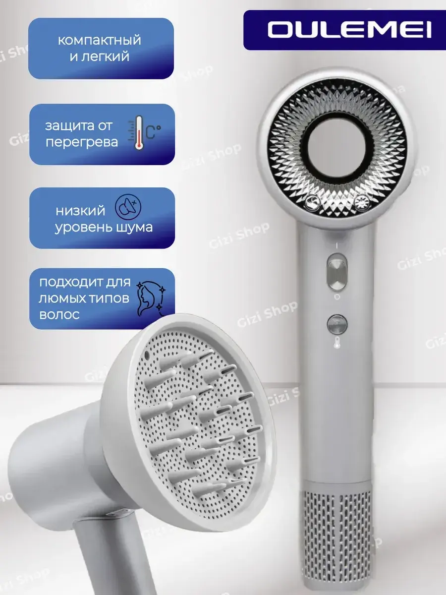 Фен для волос — это стильное и функциональное устройство мощностью 2000 Вт, которое идеально подходит для укладки волос. Вот его ключевые характеристики и преимущества: Основные характеристики Мощность: 2000 Вт, что обеспечивает оптимальную производительность. Напряжение: 220B-240В с частотой 50 Гц. Компактные размеры: Упаковка 125х75х280 мм и вес всего 1,5 кг, что делает его удобным для хранения и транспортировки. Беспроводной дизайн: Позволяет использовать фен дома, в поездках или на отдыхе. Преимущества Три скорости работы: Легкая адаптация под любые потребности, обеспечивая бережное и эффективное высушивание волос. Элегантный цвет: Стильный и строгий серый цвет придает устройству модный вид, делая его не только практичным, но и стильным аксессуаром. Забота о волосах: Фен обеспечивает высокое качество укладки и заботится о состоянии волос, что делает его идеальным для ежедневного использования. Заключение Фен для волос станет незаменимым помощником в создании идеальной укладки, подчеркивая индивидуальность и стиль каждой женщины. Его современный дизайн и мощность позволяют быстро и комфортно достигать желаемого результата с минимальными усилиями. Каждая женщина заслуживает лучшего, и этот фен — отличный шаг к заботе о своей красоте и ухоженности!